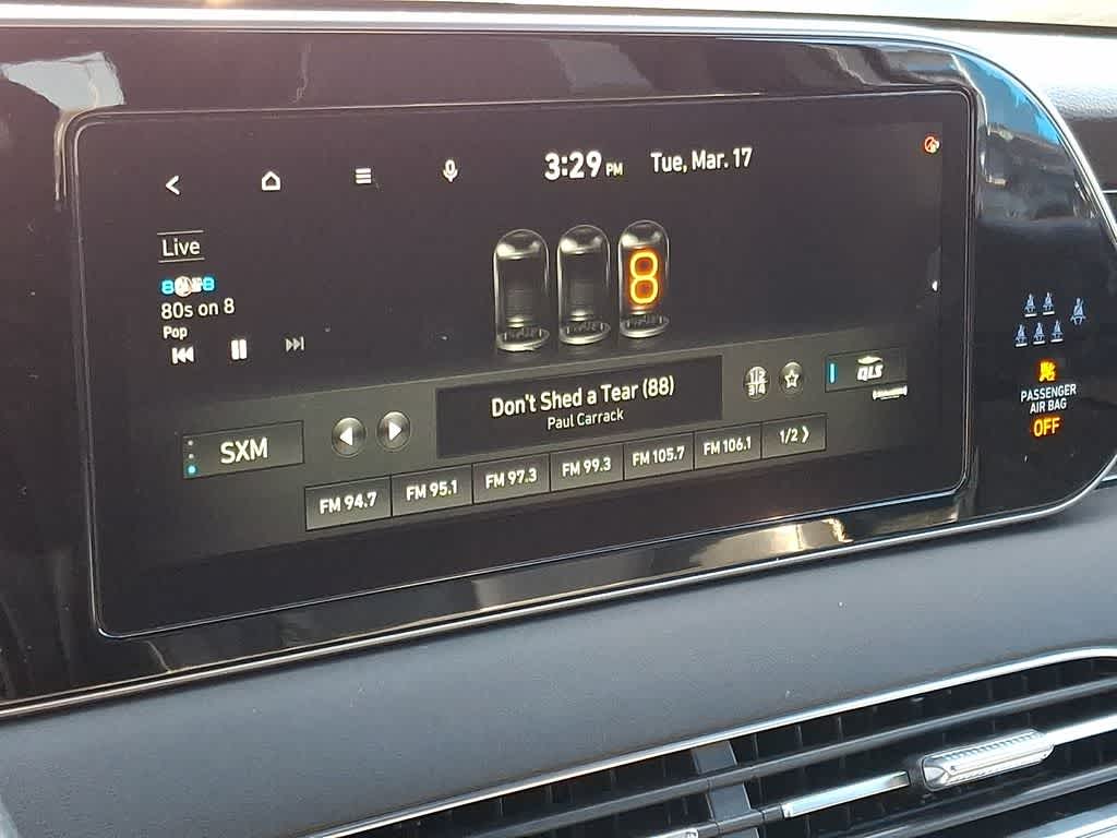 - Radio: AM/FM/MP3 Premium Audio System -inc: 10.25" display screen, Apple CarPlay and Android Auto, Bluetooth® hands-free w/wireless audio streaming, steering wheel audio and phone controls, dual front USB ports, SiriusXM, HD Radio, Blue Link connected car system, 12 speakers including subwoofer, external amplifier, Clari-Fi music restoration technology, QuantumLogic surround, navigation system, rear seat quiet mode and driver talk in-car intercom