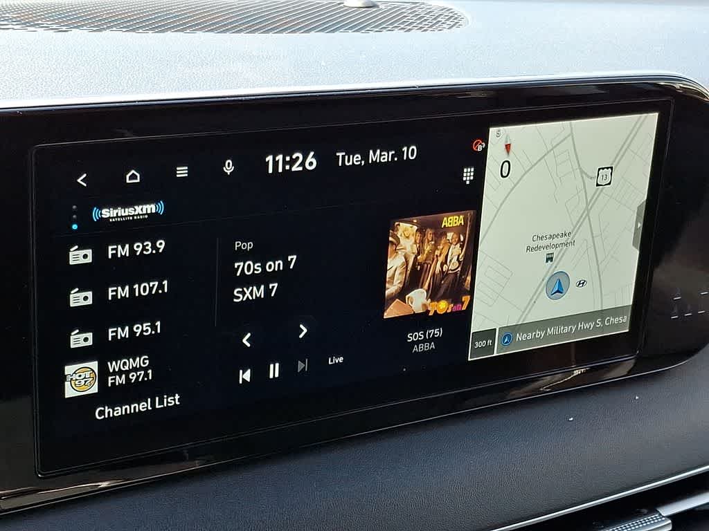 - Radio: AM/FM/MP3 Audio System -inc: 12.3" color touchscreen display, onboard navigation w/traffic flow including incident data via HD Radio (HERE), Over-the-Air (OTA) map updates, SiriusXM, USB, Android Auto and Apple CarPlay, dynamic voice recognition, rear seat quiet mode, Bluetooth® hands-free connectivity w/multiple device connection and Bluelink Connected Car System