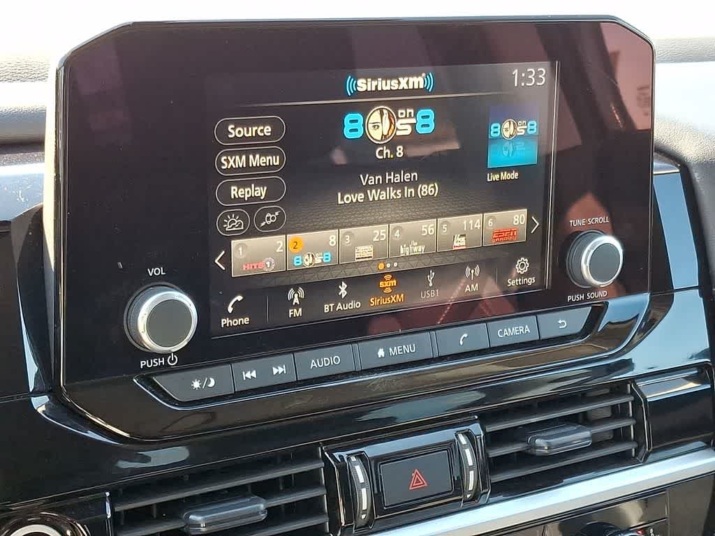 - Radio: AM/FM Audio System w/NissanConnect -inc: 6 speakers, Radio Data System (RDS), Apple CarPlay and Android Auto, 8" color display w/multi-touch control, SiriusXM Satellite Radio w/advanced audio features, 2 illuminated front USB connection ports (1 type A, 1 type C) for iPod interface and other compatible devices, Bluetooth® hands-free phone system and streaming audio, Speed-Sensitive Volume control (SSV), hands-free text messaging assistant and Siri Eyes-Free/Google Assistant voice recognition