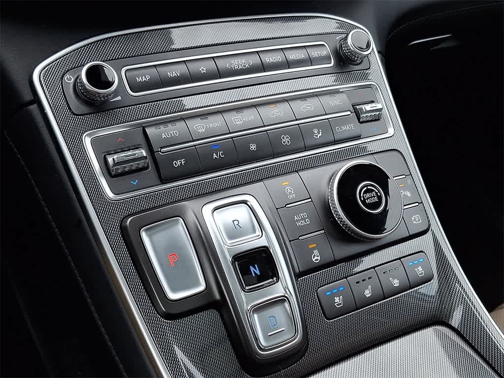 - Radio: AM/FM/MP3 Harman Kardon Display Audio -inc: 630 Watts, 10.25" wide touchscreen, Apple CarPlay and Android Auto, Bluetooth® hands-free w/wireless audio streaming, voice recognition, steering wheel audio, cruise and phone controls, dual front USB ports, SiriusXM, HD Radio, Blue Link connected car system, 12 speakers including subwoofer, external amplifier, Clari-Fi music restoration technology, QuantumLogic surround, onboard navigation system w/traffic flow including incident data via HD Radio (HERE), rear seat quiet mode and wireless device charging